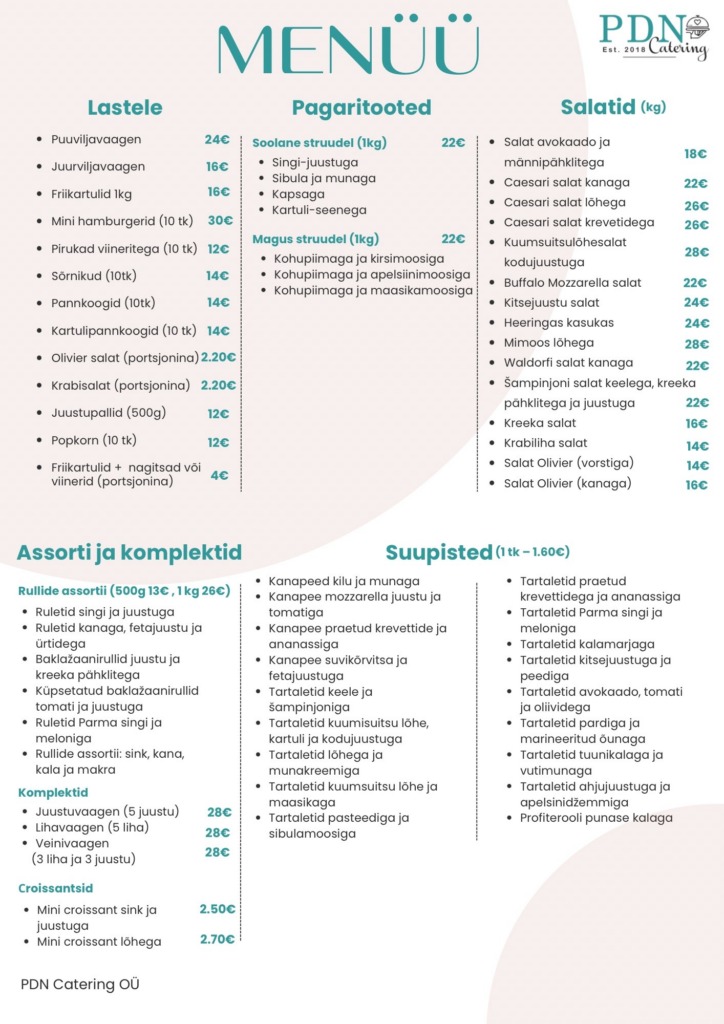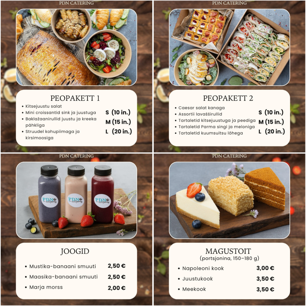 • Catering pakub erinevaid maitsvaid ettevalmistatud pakette + valik üldmenüüst
